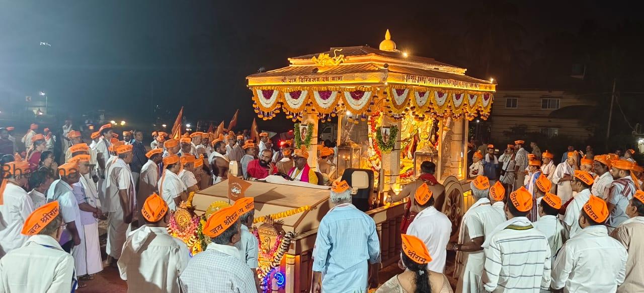ಭಟ್ಕಳ: ಹಿಮಾಲಯದ ಬದರಿನಾಥಧಾಮದಿಂದ ಅಕ್ಟೋಬರ್ 19ರಂದು ಹೊರಟ ಶ್ರೀರಾಮ ದಿಗ್ವಿಜಯ ರಥಯಾತ್ರೆಗೆ ಭಟ್ಕಳದ ಶ್ರೀ ರಾಘವೇಂದ್ರ ಸ್ವಾಮಿ ಮಠದ ಬಳಿಯಲ್ಲಿ ಭವ್ಯ ಸ್ವಾಗತ ಲಭಿಸಿದೆ. ಗೌಡ ಸಾರಸ್ವತ...