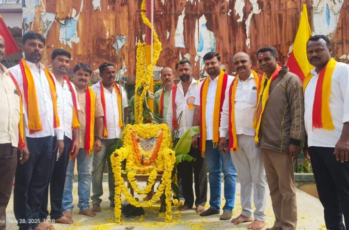 ಕೃಷ್ಣರಾಜಪೇಟೆ: ತಾಲ್ಲೂಕಿನ ಕಿಕ್ಕೇರಿ ಪಟ್ಟಣದಲ್ಲಿ ಕರ್ನಾಟಕ ರಕ್ಷಣಾ ವೇದಿಕೆ ವತಿಯಿಂದ ಆಯೋಜಿಸಿದ್ದ ಕನ್ನಡ ರಾಜ್ಯೋತ್ಸವ ಕಾರ್ಯಕ್ರಮದಲ್ಲಿ ಸಮಾಜ ಸೇವಕರಾದ ಮೊಟ್ಟೆ ಮಂಜು ಮತ್ತು ರಕ್ಷಣಾ ವೇದಿಕೆಯ ಸದಸ್ಯರುಗಳು...