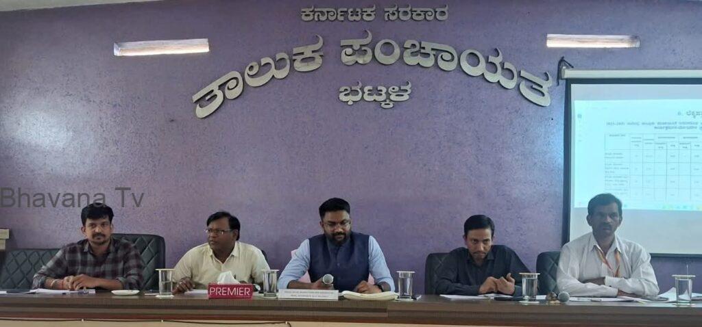 ಅವರು ಭಟ್ಕಳ ತಾಲೂಕು ಪಂಚಾಯತ್ ಸಭಾಂಗಣದಲ್ಲಿ ನಡೆದ ವಿವಿಧ ಯೋಜನೆಗಳ ಪ್ರಗತಿ ಪರಿಶೀಲನಾ ಸಭೆಯ ಅಧ್ಯಕ್ಷತೆ ವಹಿಸಿ ಮಾತನಾಡಿದರು. ಕೇಂದ್ರ ಗ್ರಾಮೀಣಾಭಿವೃದ್ಧಿ ಮಂತ್ರಾಲಯದ ಆದೇಶ ಹಾಗೂ ಗ್ರಾಮೀಣಾಭಿವೃದ್ಧಿ ಮತ್ತು ಪಂಚಾಯತ ರಾಜ್ ಇಲಾಖೆಯ ಸೂಚನೆಯಂತೆ ಜಿಲ್ಲೆಯಲ್ಲಿ ಮಹಾತ್ಮಗಾಂಧಿ ನರೇಗಾ ಯೋಜನೆಯಡಿ ನೋಂದಾಯಿತ ಸಕ್ರಿಯ ಕೂಲಿಕಾರರ ಜಾಬ್ ಕಾರ್ಡ್ ಗಳನ್ನು ಇ-ಕೆವೈಸಿ ಮೂಲಕ ಮೌಲ್ಯೀಕರಿಸುತ್ತಿದ್ದು, ಎಲ್ಲಾ ಗ್ರಾಮ ಪಂಚಾಯಿತಿಗಳ ಸಕ್ರಿಯ ಕೂಲಿಕಾರರ ಇಕೆವೈಸಿಯನ್ನು ಅಭಿಯಾನದ ಮಾದರಿಯಲ್ಲಿ ಅತೀ ತುರ್ತಾಗಿ ಪೂರ್ಣಗೊಳಿಸಬೇಕು ಎಂದರು.