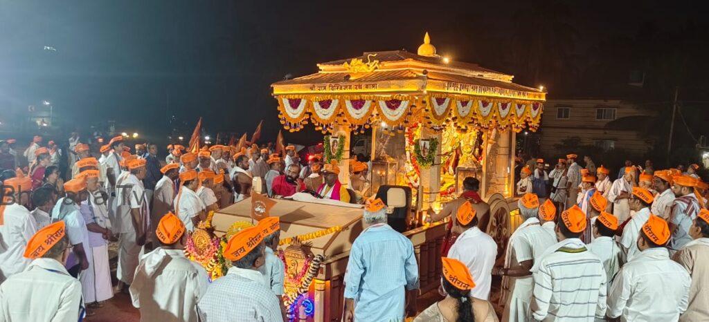 ಭಟ್ಕಳ: ಹಿಮಾಲಯದ ಬದರಿನಾಥಧಾಮದಿಂದ ಅಕ್ಟೋಬರ್ 19ರಂದು ಹೊರಟ ಶ್ರೀರಾಮ ದಿಗ್ವಿಜಯ ರಥಯಾತ್ರೆಗೆ ಭಟ್ಕಳದ ಶ್ರೀ ರಾಘವೇಂದ್ರ ಸ್ವಾಮಿ ಮಠದ ಬಳಿಯಲ್ಲಿ ಭವ್ಯ ಸ್ವಾಗತ ಲಭಿಸಿದೆ.