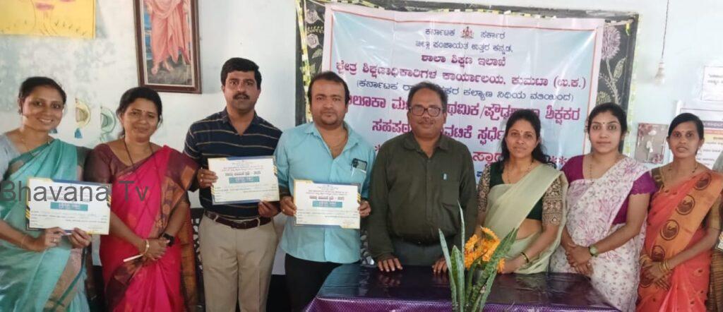ಕುಮಟಾ : ಶಹರದ ಜಿಲ್ಲಾ ಶಿಕ್ಷಣ ಮತ್ತು ತರಬೇತಿ ಸಂಸ್ಥೆಯ ಸನಿಹದಲ್ಲಿನ ಪ್ರಾಯೋಗಿಕ ಶಾಲೆಯಲ್ಲಿ ಸ್ಥಳೀಯ ಕ್ಷೇತ್ರ ಶಿಕ್ಷಣಾಧಿಕಾರಿಗಳ ಕಾರ್ಯಾಲಯದಿಂದ ಪ್ರಾಥಮಿಕ ಮತ್ತು ಪ್ರೌಢ ಶಾಲಾ ಶಿಕ್ಷಕರಿಗಾಗಿ ಶಿಕ್ಷಕರ ಕಲ್ಯಾಣ ನಿಧಿಯ ವಿವಿಧ ಸ್ಪರ್ಧೆಗಳನ್ನು ಆಯೋಜಿಸಲಾಗಿತ್ತು.