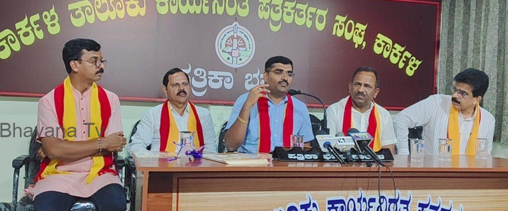 ಕಾರ್ಕಳ ಪತ್ರಿಕಾ ಭವನದಲ್ಲಿ ಸೋಮವಾರ ಕಾರ್ಕಳ ತಾಲೂಕು ಕ.ಸಾ.ಪ ವತಿಯಿಂದ ನಡೆದ ಪತ್ರಿಕಾಗೋಷ್ಠಿಯನ್ನು ಉದ್ದೇಶಿಸಿ ಮಾತನಾಡಿದರು.