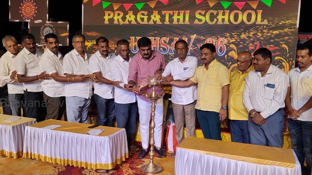 ಕೃಷ್ಣರಾಜಪೇಟೆ : ಪಟ್ಟಣದ ಪ್ರಗತಿ ಆಂಗ್ಲ ಮಾಧ್ಯಮ ಶಾಲೆಯ ಪ್ರಗತಿ ಉತ್ಸವ-2026 ಕಾರ್ಯಕ್ರಮವನ್ನು ಜ್ಯೋತಿ ಬೆಳಗಿಸಿ ಉದ್ಘಾಟಿಸಿ ಮಾತನಾಡಿದರು. ಗ್ರಾಮೀಣ ಪ್ರದೇಶದ ವಿದ್ಯಾರ್ಥಿಗಳಿಗೆ ಕಳೆದ 34 ವರ್ಷಗಳಿಂದ ಗುಣಮಟ್ಟದ ಶಿಕ್ಷಣವನ್ನು ನೀಡುವ ಜೊತೆಗೆ ಎಸ್ ಎಸ್ ಎಲ್ ಸಿ ಪರೀಕ್ಷೆಯಲ್ಲಿ ಶೇಕಡ ನೂರಕ್ಕೆ ನೂರರಷ್ಟು ಫಲಿತಾಂಶವನ್ನು ತಂದು ಕೊಡುವ ಮೂಲಕ ಕೃಷ್ಣರಾಜಪೇಟೆ ತಾಲೂಕಿನಲ್ಲಿಯೇ ಮಾದರಿ ಶಿಕ್ಷಣ ಸಂಸ್ಥೆಯಾಗಿ ಹೊರಹೊಮ್ಮಿರುವ ಪ್ರಗತಿ ಪ್ರೌಢಶಾಲೆಯು ಬಡ ವಿದ್ಯಾರ್ಥಿಗಳ ಶೈಕ್ಷಣಿಕ ವಿಕಸನಕ್ಕೆ ದಾರಿ ದೀಪವಾಗಿದೆ ಎಂದು ಅಭಿಮಾನದಿಂದ ಹೇಳಿದರು.