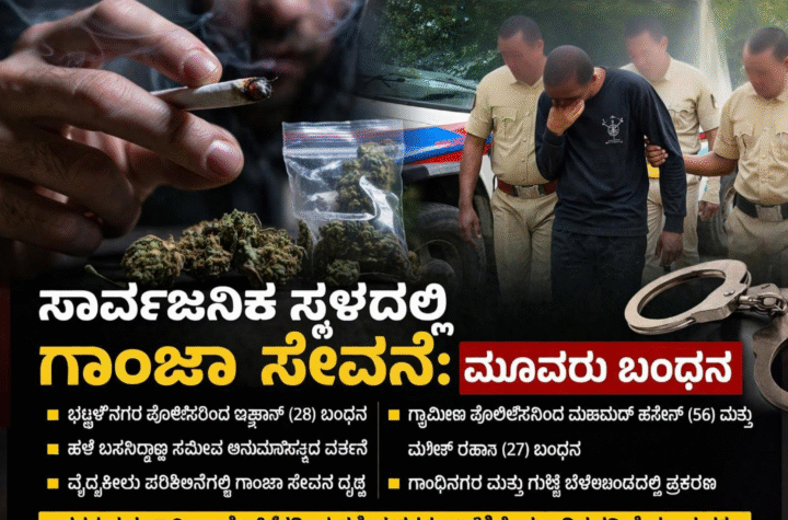 ಸಾರ್ವಜನಿಕ ಸ್ಥಳದಲ್ಲಿ ಗಾಂಜಾ ಸೇವನೆ: ಮೂವರು ಬಂಧನ