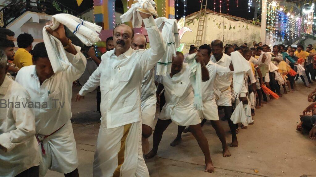 ಕರ್ನಾಟಕ ರಾಜ್ಯದ ಮಾಜಿ ಸಚಿವರಾದ ಗ್ರಾಮದ ಸುಪುತ್ರ ಡಾಕ್ಟರ್ ನಾರಾಯಣ ಗೌಡ ಅವರು ಗ್ರಾಮರಕ್ಷಕ ಶ್ರೀ ವೀರಭದ್ರೇಶ್ವರ ಸ್ವಾಮಿಗೆ ವಿಶೇಷ ಪೂಜೆ ಸಲ್ಲಿಸಿ, ಗ್ರಾಮದ ಯುವಕರೊಂದಿಗೆ ರಂಗಕುಣಿತದಲ್ಲಿ ಭಾಗಿಯಾಗಿ ತಮಟೆಯ ಸದ್ದಿಗೆ ಹೆಜ್ಜೆ ಹಾಕಿ ಕುಣಿದು ಸಂಭ್ರಮಿಸಿದರು. ರಾಜ್ಯದ ಮಾಜಿ ಸಚಿವರಾದ ನಾರಾಯಣಗೌಡ ಮಾತನಾಡಿ ಹಬ್ಬ ಹರಿದಿನಗಳು ಜಾತ್ರೆ ಉತ್ಸವಗಳು ನಮ್ಮ ಸಂಸ್ಕೃತಿಯ ಪ್ರತಿಬಿಂಬವಾಗಿದೆ ಹಬ್ಬದ ಸಂಭ್ರಮದಲ್ಲಿ ಎಲ್ಲರೂ ಒಂದಾಗಿ ಗ್ರಾಮ ದೇವತೆಯ ಹಬ್ಬದಲ್ಲೇ ಭಾಗಿಯಾದಾಗ ಮನಸ್ಸಿಗೆ ಸಂತೋಷವಾಗುವ ಜೊತೆಗೆ ಗ್ರಾಮದಲ್ಲಿ ಸುಖ ಶಾಂತಿ ಸಮೃದ್ಧಿ ನೆಲೆಸುವುದಲ್ಲದೆ, ಗ್ರಾಮದಲ್ಲಿ ಸಹಬಾಳ್ವೆಯ ಜೀವನಕ್ಕೆ ನಾಂಧಿ ಯಾಗಲಿದೆ ಎಂದು ನಾರಾಯಣ ಗೌಡ ಹೇಳಿದರು.