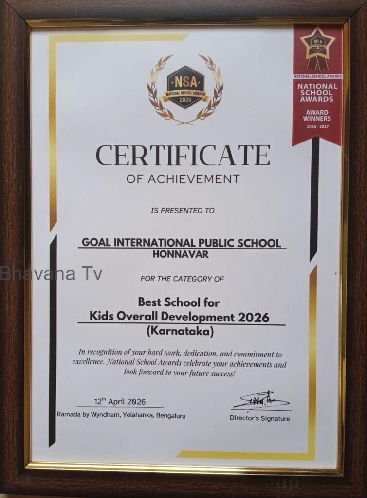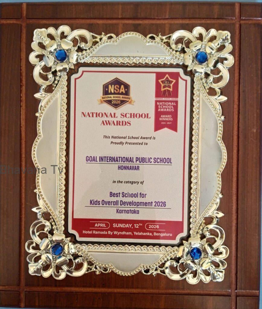 ಹೋನ್ನಾರ,ಮಂಕಿ : ಗೋಲ್ ಇಂಟರ್ನ್ಯಾಷನಲ್ ಪಬ್ಲಿಕ್ ಸ್ಕೂಲ್ ಅನ್ನು ಕರ್ನಾಟಕದ ಮಕ್ಕಳ ಒಟ್ಟಾರೆ ಅಭಿವೃದ್ಧಿಗಾಗಿ ಅತ್ಯುತ್ತಮ ಶಾಲೆಗಾಗಿ ರಾಷ್ಟ್ರೀಯ ಶಾಲಾ ಪ್ರಶಸ್ತಿ 2026* ನೀಡಿ ಗೌರವಿಸಲಾಗಿದೆ.