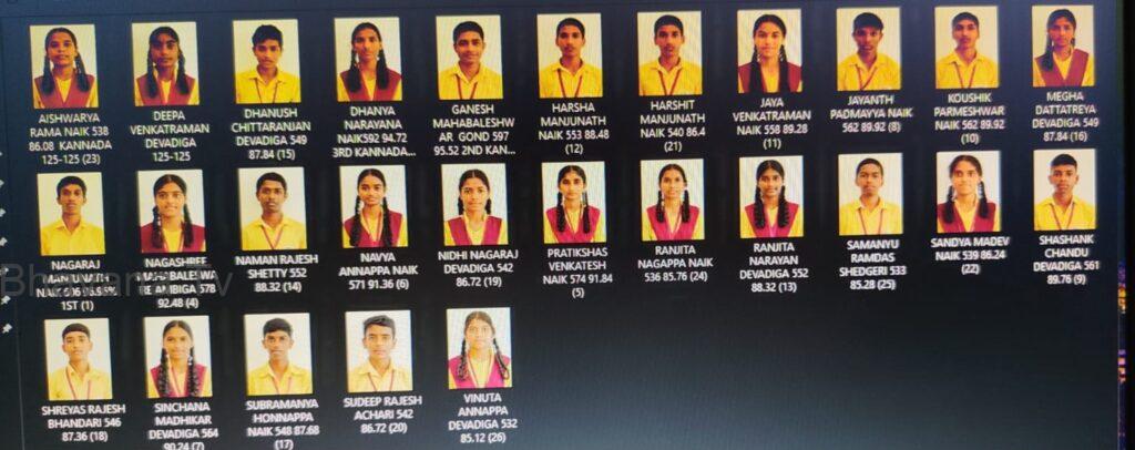 ಈ ವರ್ಷ ವಿದ್ಯಾರ್ಥಿಗಳಲ್ಲಿ ನಾಗರಾಜ್ ಮಂಜುನಾಥ ನಾಯ್ಕ್ ಅವರು 606 ಅಂಕಗಳನ್ನು ಪಡೆದು 96.96% ಸಾಧನೆ ಮಾಡಿ ಶಾಲೆಯಲ್ಲಿ ಪ್ರಥಮ ಸ್ಥಾನ ಗಳಿಸಿದ್ದಾರೆ.ಗಣೇಶ್ ಮಹಾಬಲೇಶ್ವರ ಗೋಂಡ ಅವರು 597 ಅಂಕಗಳನ್ನು ಪಡೆದು 95.52% ಸಾಧನೆ ಮಾಡಿದ್ದಾರೆ. ಧನ್ಯಾ ನಾರಾಯಣ ನಾಯ್ಕ್ ಅವರು 592 ಅಂಕಗಳನ್ನು ಪಡೆದು 95.52% ಸಾಧನೆ ಮಾಡಿದ್ದಾರೆ.
