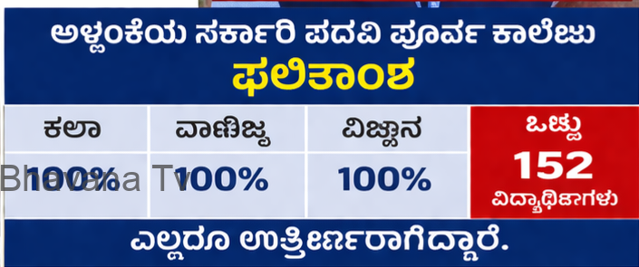 ಹೋನ್ನಾವರ : ತಾಲೂಕಿನ ಅಳ್ಳಂಕಿಯ ಸರಕಾರಿ ಪದವಿ ಪೂರ್ವ ಕಾಲೇಜು ಪಿ ಯು ಪರೀಕ್ಷೆಯಲ್ಲಿ ಶೇ.100 ಫಲಿತಾಂಶ ದಾಖಲಿಸಿದೆ.ಫಲಿತಾಂಶ ವಿವರ:ಕಲಾ ವಿಭಾಗ – 100%ವಾಣಿಜ್ಯ ವಿಭಾಗ –...