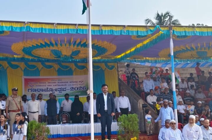 ತಾಲೂಕು ಕ್ರೀಡಾಂಗಣದಲ್ಲಿ ಧ್ವಜಾರೋಹಣ ಭಟ್ಕಳ: ತಾಲ್ಲೂಕಾ ಆಡಳಿತ, ತಾಲೂಕು ಪಂಚಾಯತ್, ಭಟ್ಕಳ ಪುರಸಭೆ ಹಾಗೂ ಜಾಲಿ ಪಟ್ಟಣ ಪಂಚಾಯತ್ಗಳ ಸಂಯುಕ್ತ ಆಶ್ರಯದಲ್ಲಿ 77ನೇ ಗಣರಾಜ್ಯೋತ್ಸವವನ್ನು ಭಟ್ಕಳದ ತಾಲೂಕು...