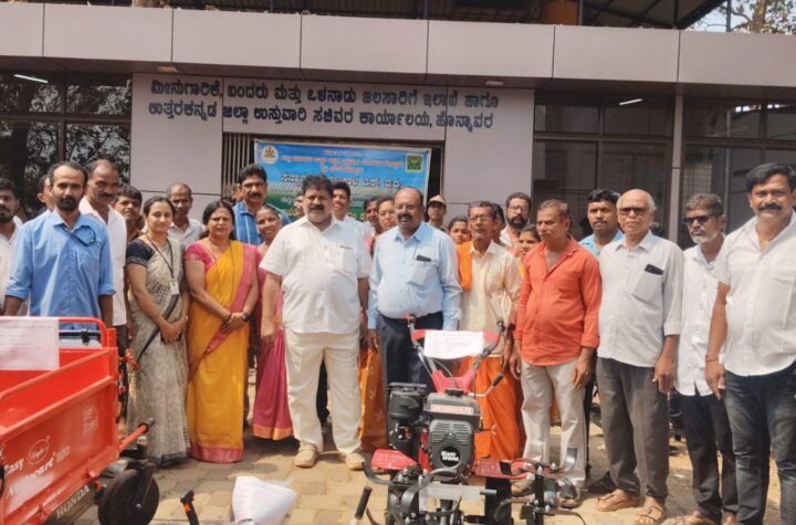 ಹೊನ್ನಾವರ: ತಾಲೂಕಿನ ರೈತರಿಗೆ ಕೃಷಿ ಇಲಾಖೆ ಮೂಲಕ ಸಹಾಯಧನದಿಂದ ಮಂಜೂರಾದ ಕೃಷಿ ಯಂತ್ರೋಪಕರಣ ಹಾಗೂ ಸಣ್ಣ ನೀರಾವರಿ ಘಟಕದ ಸಲಕರಣೆ ವಿತರಣೆಯನ್ನು ಮೀನುಗಾರಿಕೆ ಬಂದರು ಒಳನಾಡು ಜಲಸಾರಿಗೆ...